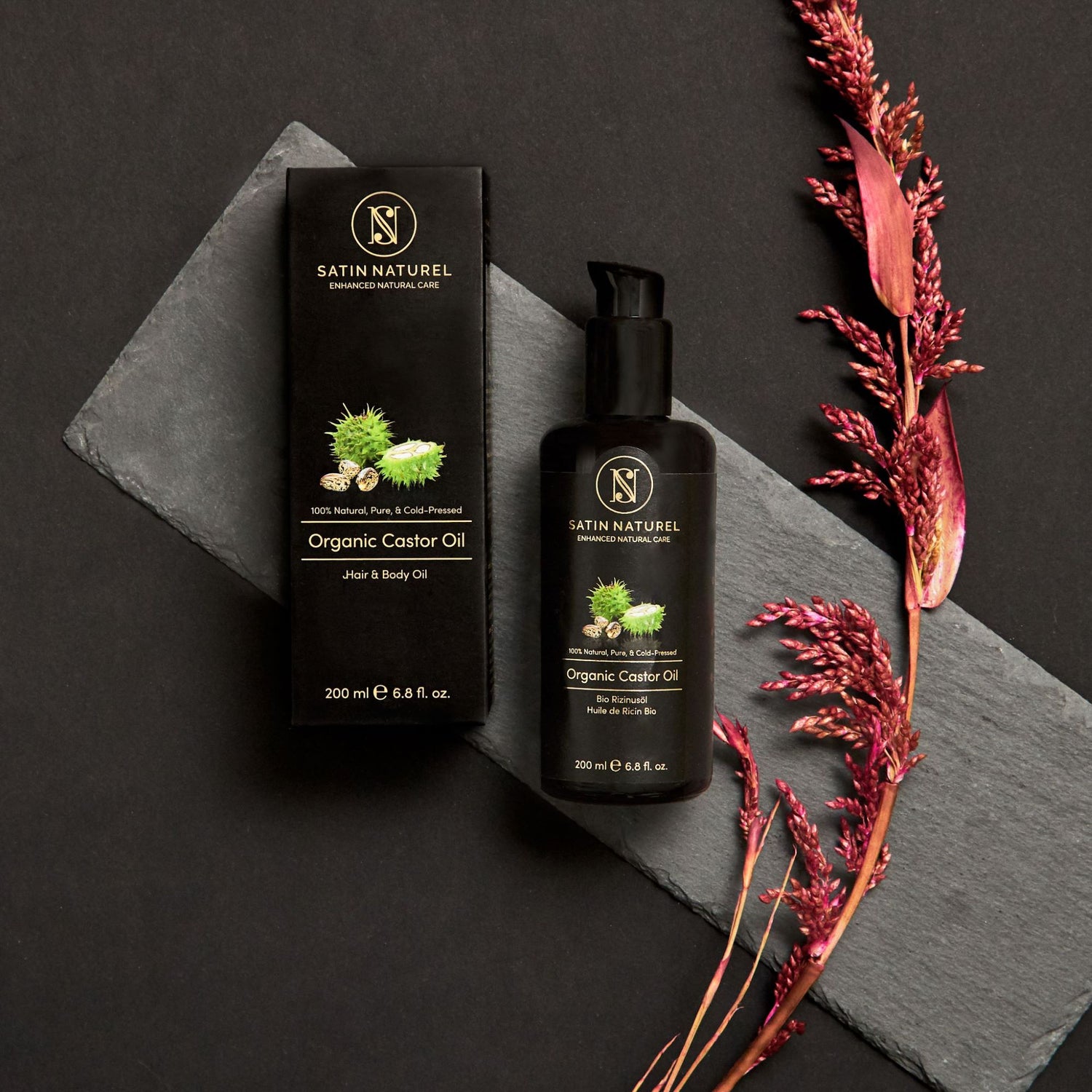 Wir empfehlen Dir hier, auf Öl von Naturkosmetikherstellern wie Satin Naturel zu setzen. Unser Rizinusöl ist 100 % rein, natürlich, aus biologisch zertifiziertem Anbau, weiterhin kaltgepresst und ohne schädliche Inhaltsstoffe wie Parabene, Chemikalien, Sulfate oder auch Pestizide. Es wird Dir in einem echten Violettglas für den bestmöglichsten Erhalte der Nährstoffe und Vitamine geliefert.