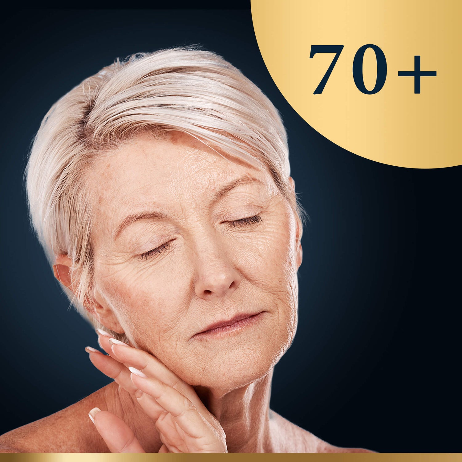 Da der Teint ab 70 eher blass und bleich und die Haut aufgrund fehlender Elastizität sehr schlaff ist, gilt es nun, mit maximal konzentrierten Pflegeprodukten die Elastizität, die Spannkraft und die Konturierung der Haut zu unterstützen. Außerdem sollten auch jetzt zusätzlich enthaltene Öle fahler und schlaffer Haut mehr Geschmeidigkeit verleihen.