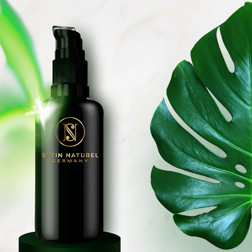 Das Satin Naturel Hyaluron Konzentrat enthält ein überdurchschnittlich hochkonzentriertes Bio Hyaluronsäure Serum. Was es nicht enthält, sind fragwürdige Zusatzstoffe, die Deine Haut belasten und von denen unklar ist, welche Langzeitwirkungen sie haben. Dazu gehören neben Parabenen, Sulfaten und Mikroplastik auch Erdöl und andere schädliche Chemikalien. Ergänzt wird die hohe Wirksamkeit des Hyaluron Konzentrats durch den Inhaltsstoff Aloe Vera. Bio Aloe Vera garantiert eine höhere Wirkstoffkonzentration und eine bessere Feuchtigkeitsversorgung Deiner Haut. Neben hochwirksamer Hyaluronsäure enthält das Hyaluron Konzentrat zusätzliche pflegende Pflanzenextrakte und ätherische Öle, die es zum wirksamsten Produkt gegen Falten auf dem deutschen Markt machen.