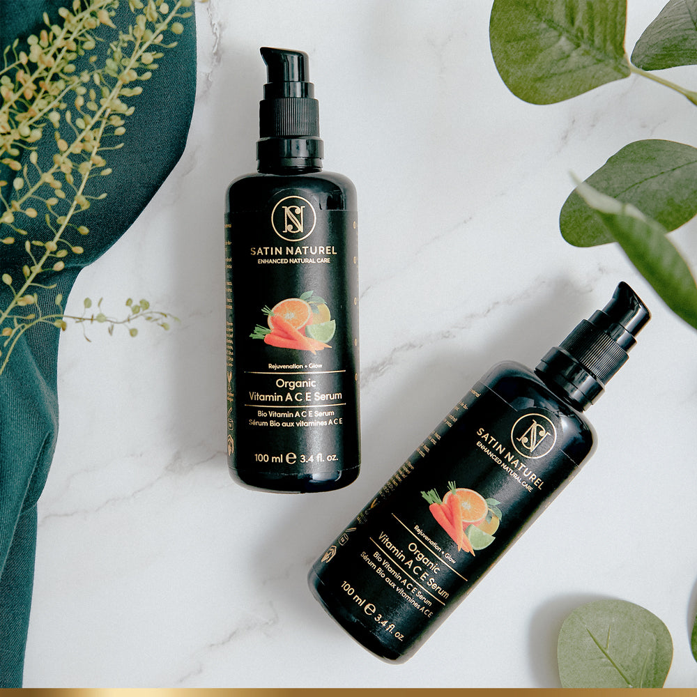 Darüber hinaus ist es für uns unabdingbar, dass die Wirksamkeit und Unbedenklichkeit aller Inhaltsstoffe durch wissenschaftliche Studien nachgewiesen wurden. Auf diese Weise wird die höchstmögliche Qualität auf dem Markt gewährleistet. Da wir möchten, dass so viele Menschen wie möglich Zugang zu unserer Naturkosmetik haben, ist ein günstiges Preis-Leistungs-Verhältnis eine Selbstverständlichkeit für uns. Aus diesem Grund kommen unsere Vitamin A C E Seren nicht nur mit einem konkurrenzfähigen Preis daher, sondern ebenfalls mit einer außergewöhnlichen Verpackungsgröße: Mit 100 ml Inhalt enthält das Vitamin ACE Serum von Satin Naturel dreimal so viel wie vergleichbare Hautpflege anderer Hersteller. Zusätzlich wirst Du an erster Stelle der Inhaltsstoffliste kein Wasser (Aqua) finden – wie es sonst die Regel ist. Denn wir sind der Meinung, Du solltest nicht für wirkungsloses Wasser bezahlen, sondern ausschließlich für echte, wirksame Inhaltsstoffe. Deswegen haben wir uns für Bio Aloe Vera entschieden, die zusätzlich Feuchtigkeit spendet und entzündungshemmend wirkt. Bei uns bekommst Du daher mehr Produkt für weniger Geld bei herausragender Qualität!