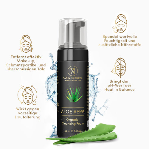 Der Satin Naturel Organic Cleansing Foam ist für alle Hauttypen und insbesondere für empfindliche Haut geeignet, da er Dir eine sanfte Reinigung bietet. Der auf feuchtigkeits- und nährstoffspendender Aloe Vera Basis formulierte Cleanser beruhigt und regeneriert Deine Haut und sorgt zugleich für tiefgehende Reinigung. Dabei hat er eine leichte Textur, die jedoch zu einer üppigen und optimal verteilbaren Mousse aufschäumt. Der leichte Orangenduft vermittelt Dir einen luxuriösen Hauch vitalisierender Frische.