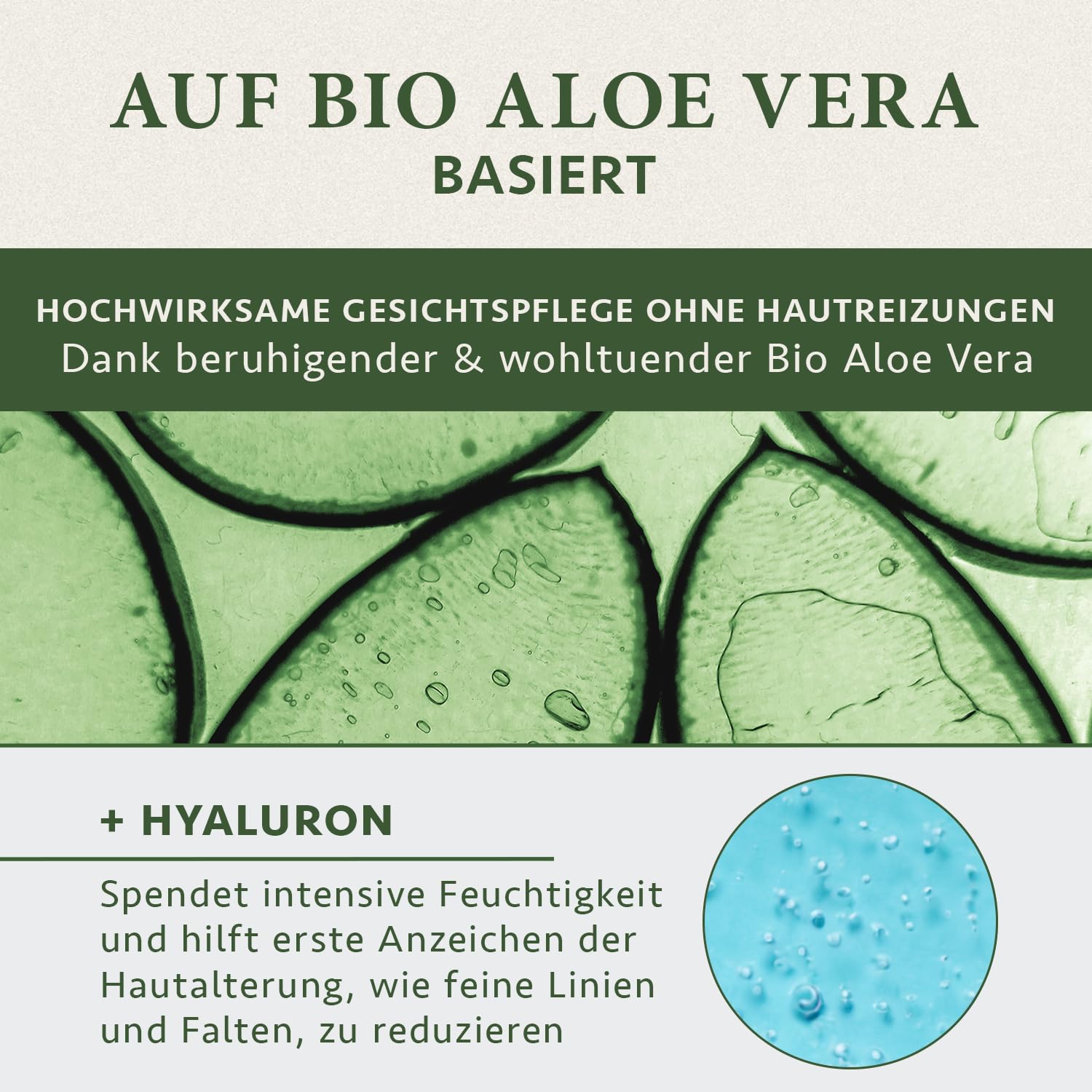 Die Bio Aloe Vera Basis kombiniert mit botanischen Extrakten unterstützt zusätzlich die Revitalisierung Deiner Haut und sorgt für ein sofort spürbar frisches und gepflegtes Hautgefühl.