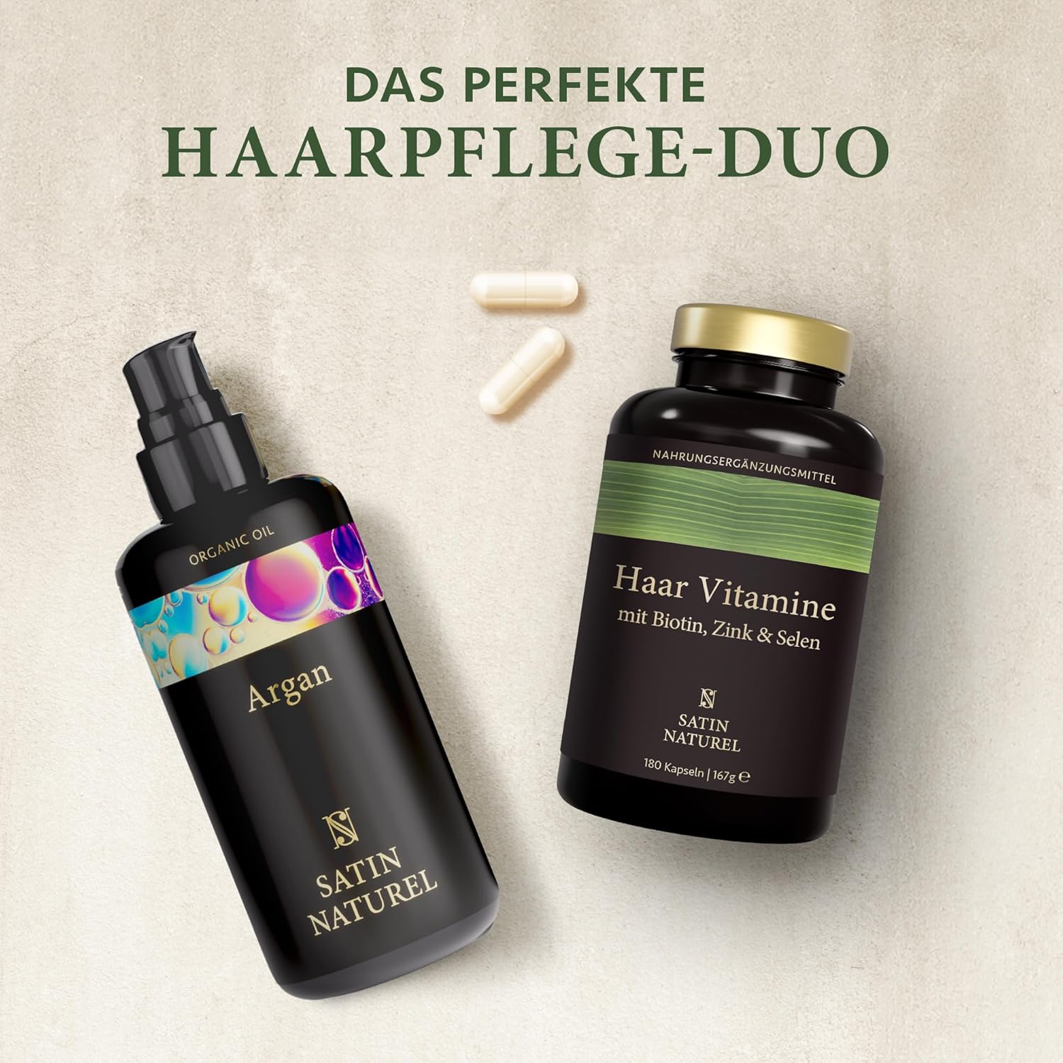 Die Satin Naturel Haar Vitamine liefern eine hochdosierte Premium-Formel für gesundes Haar, strahlende Haut und kräftige Nägel. Mit Biotin, Zink, Selen, Hirseextrakt und Vitamin C unterstützen die Kapseln das natürliche Haarwachstum, stärken Nägel und fördern eine vitale Haut.