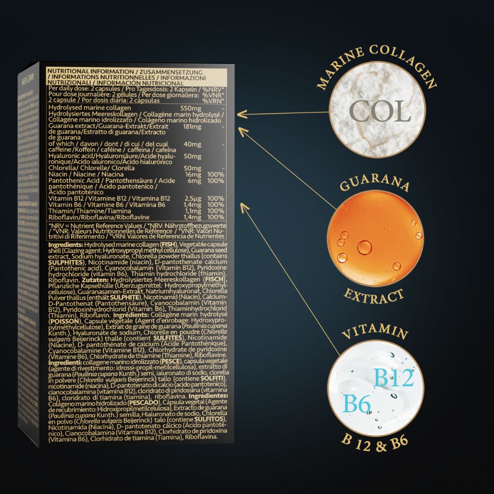 Wenn die Sonne aufgeht, ist Collagen Morning+ die einfache Wahl, um in den Tag zu starten. Speziell für Menschen, deren Magen leicht übersäuert, ersetzt die Morning-Boost-Kapsel den morgendlichen Kaffee durch natürliches Guarana-Koffein.